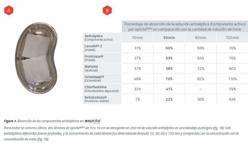 EPICITE RESCUE® muestra una absorción rápida y eficiente de las soluciones antisépticas